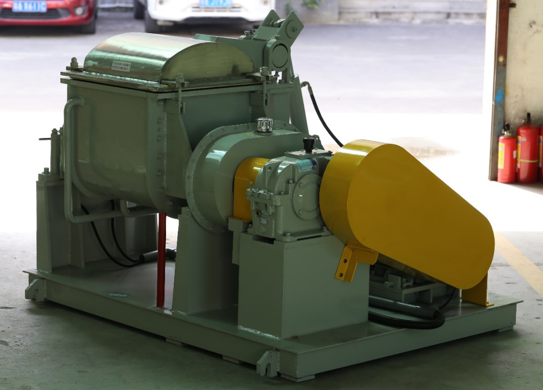 整機由雙捏合轉子(捏合軸)、捏合室(料斗)、翻轉機構、翻蓋機構、傳動機構、減速電機、機架和控制裝置等組成。